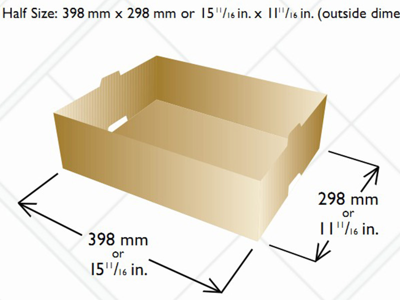 感覺有點熟悉吧,跟歐洲的包裝一樣的啊!是的,美洲地區(qū)的農(nóng)產(chǎn)品包裝也有自己的標準,美國FBA(瓦楞紙箱委員會)的標準中就規(guī)范了紙箱的底面積,主要的兩個尺寸為: